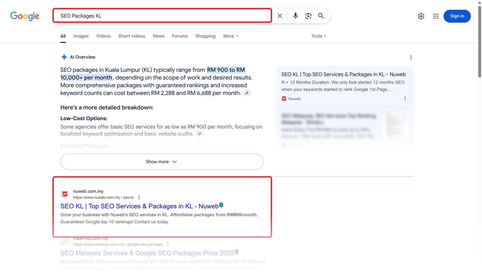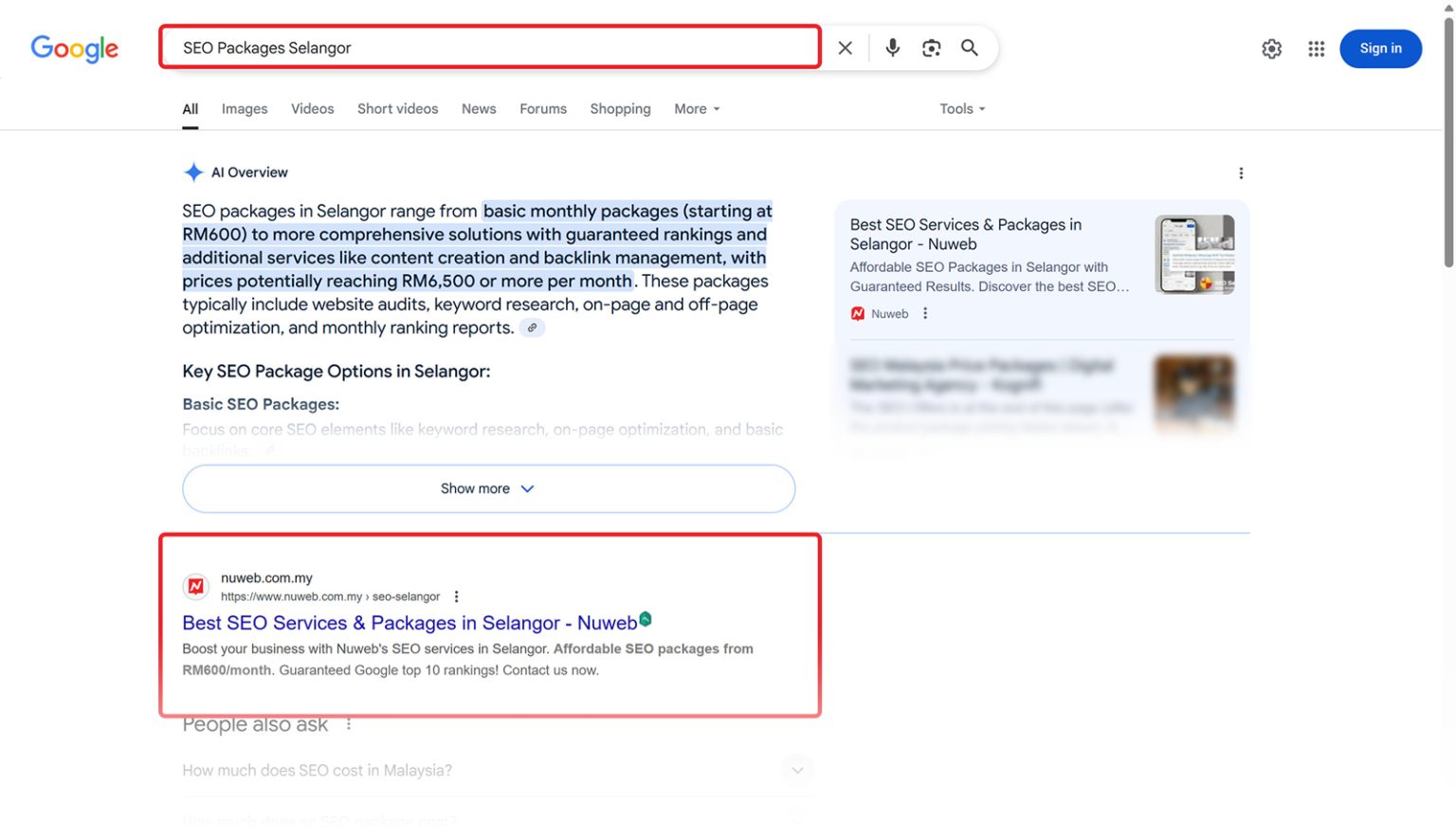 Our SEO SE start at RM600 per month, covering 10 keywords, unlimited clicks, and multiple landing pages. For businesses aiming to dominate local search, our SEO Plus limited-time offer guarantees keywords in Google’s Top 10 for only RM1,000/month (originally RM2,000). We also introduce SEO PRO that covers Google Ai Overview.